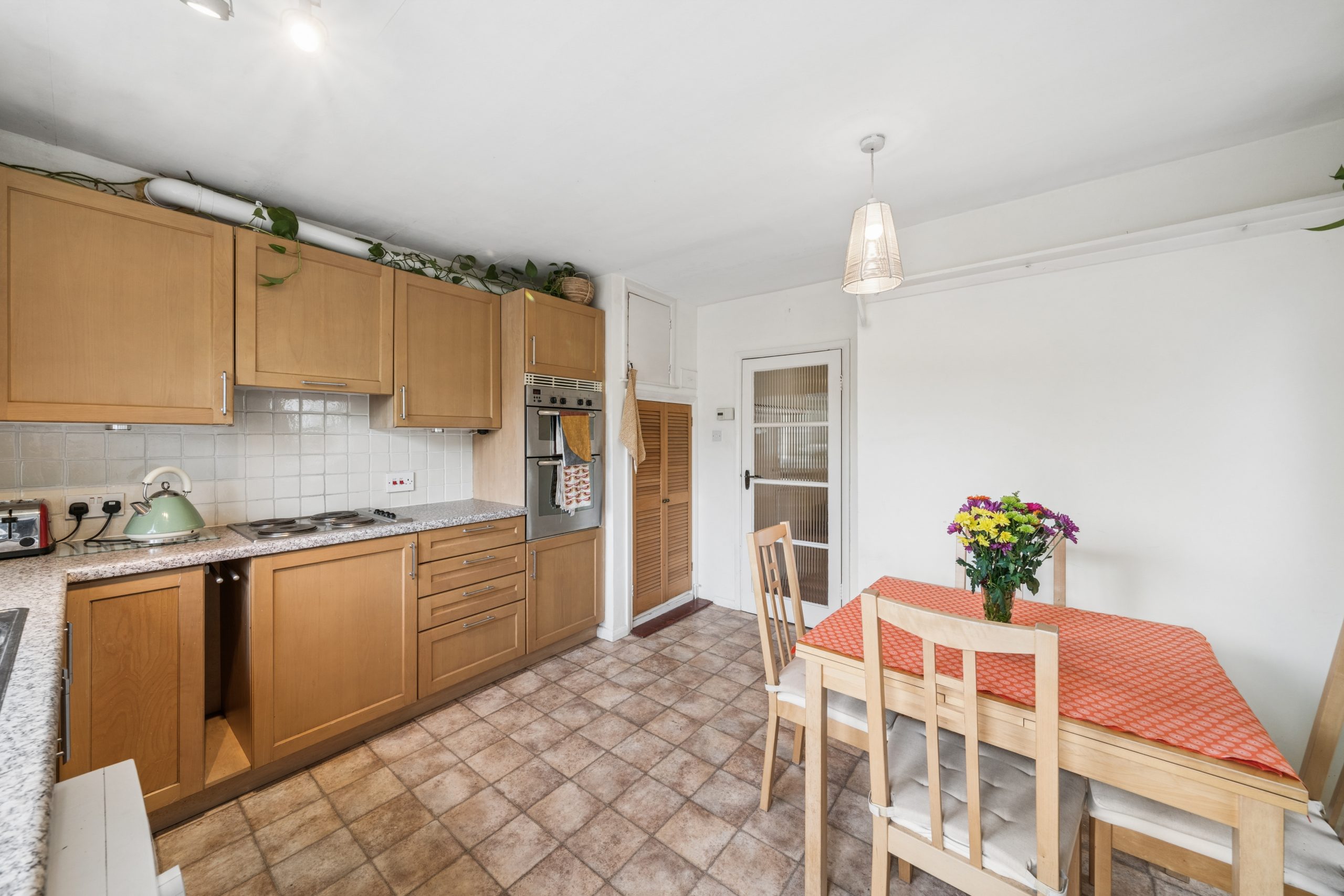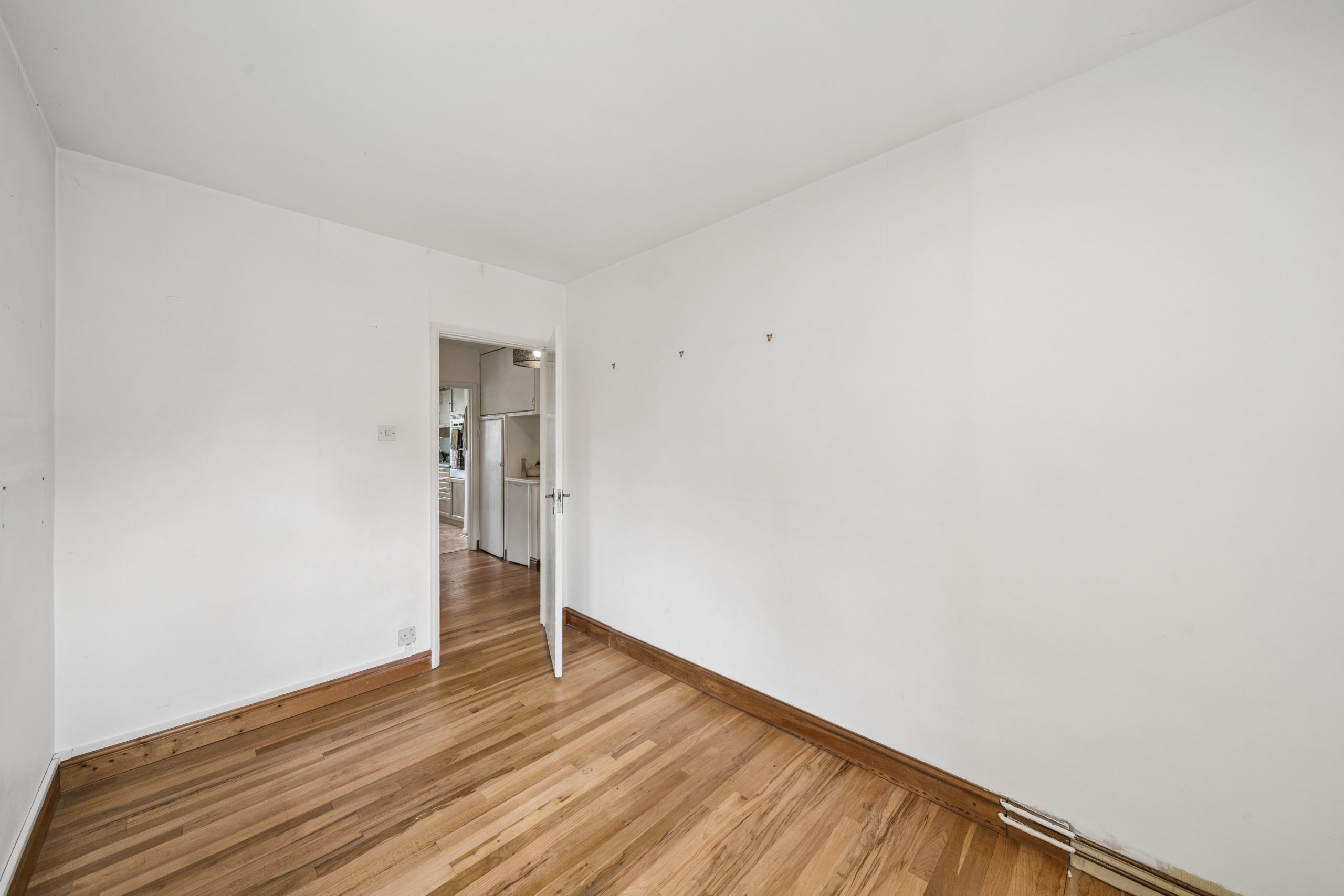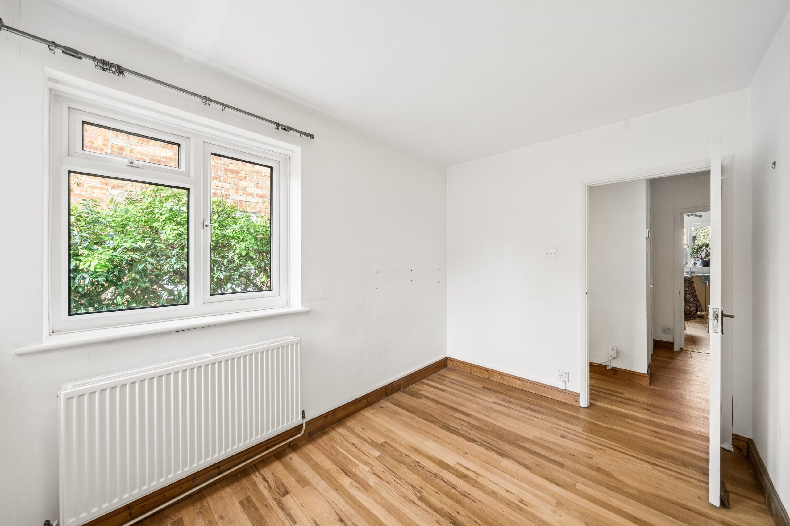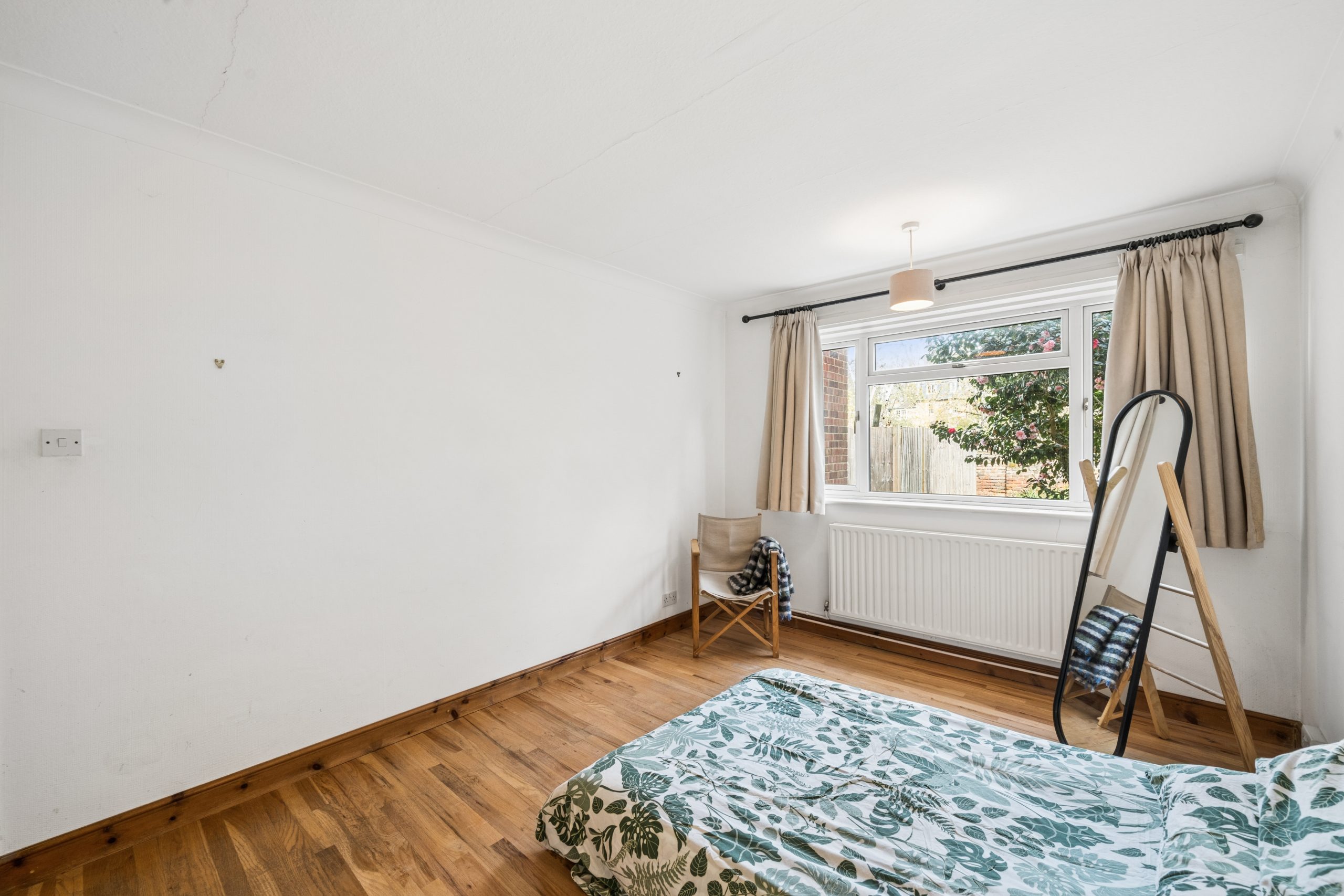 Extending to an impressive 758 sq/ft, the property is ready for cosmetic improvement, allowing a new owner to bring their own vision and style to a remarkably spacious home. Accessed via a private side entrance, the accommodation is thoughtfully arranged with a kitchen breakfast room and a principal bedroom situated to the rear, both of which enjoy peaceful views over the private garden. To the front, the large sitting room and a second double bedroom look out across the front garden, while a family bathroom and extensive hallway storage complete the internal layout.