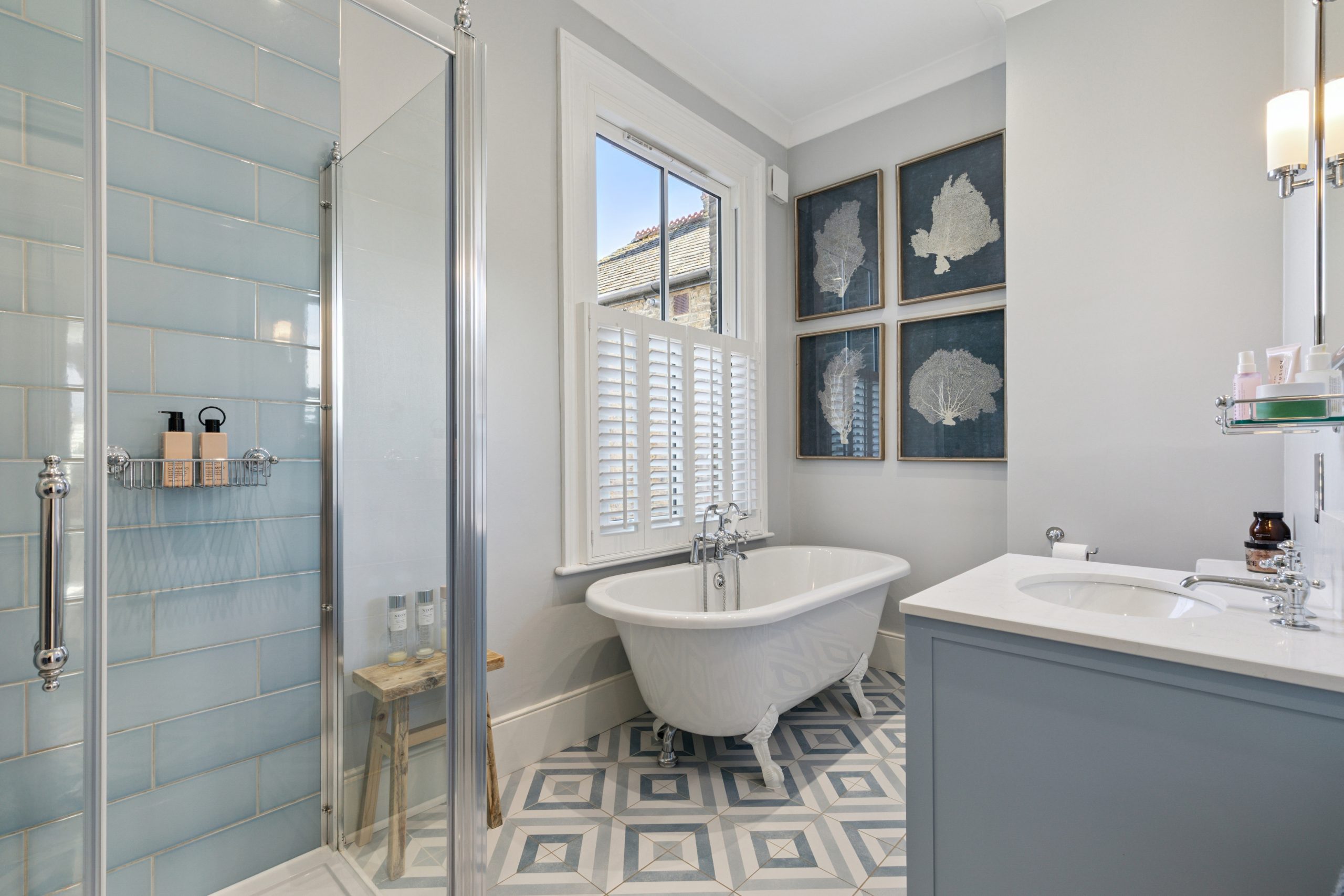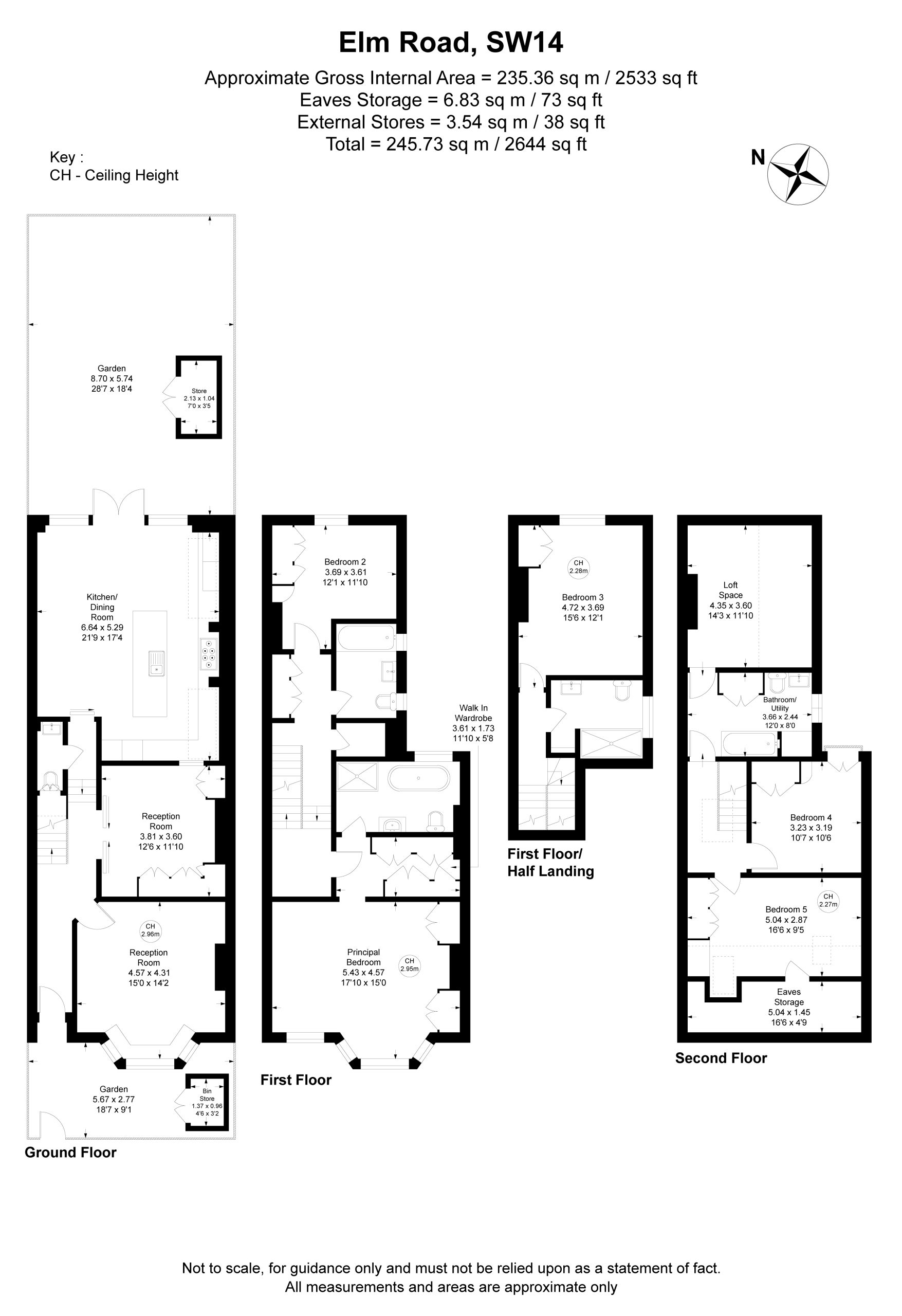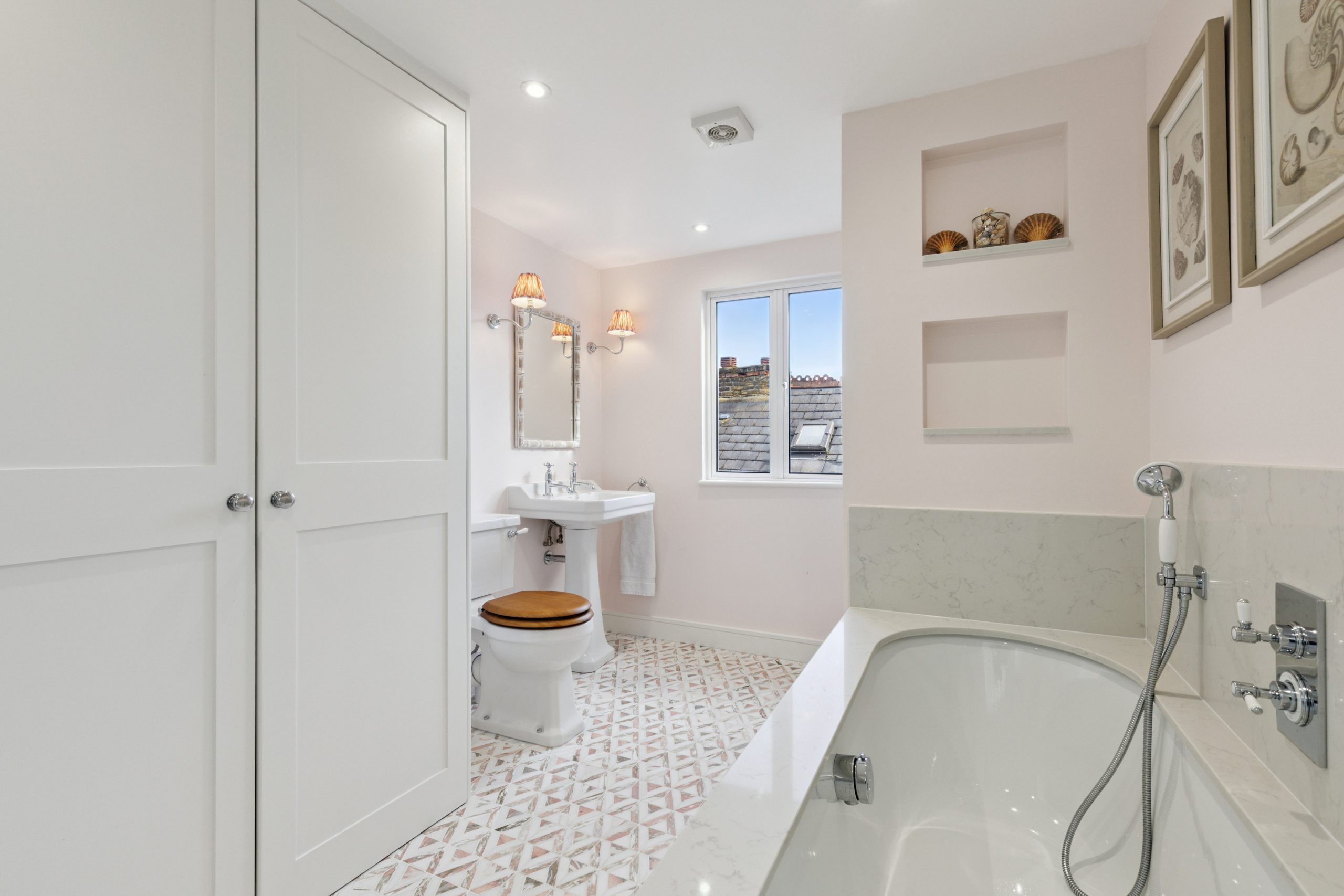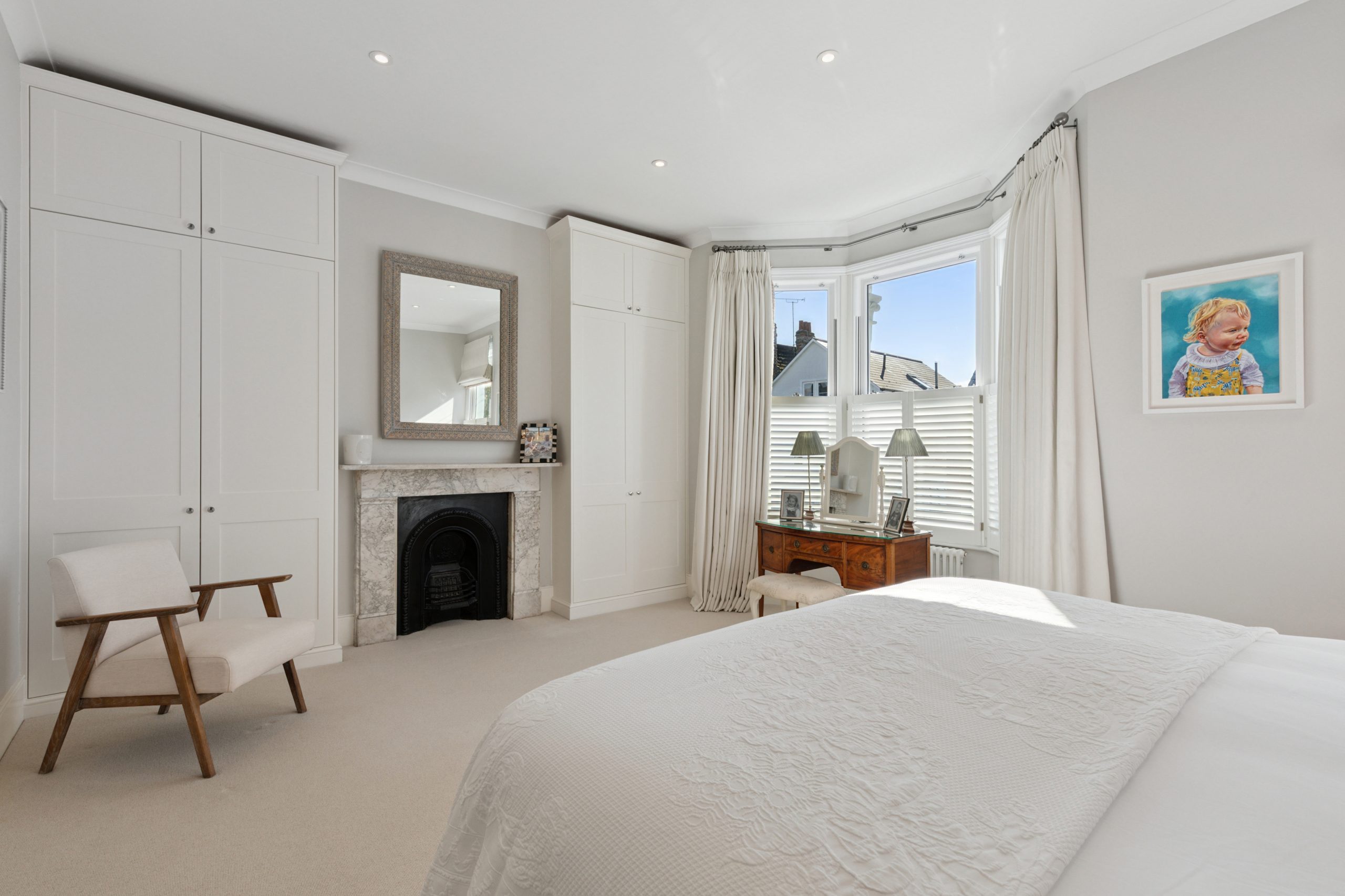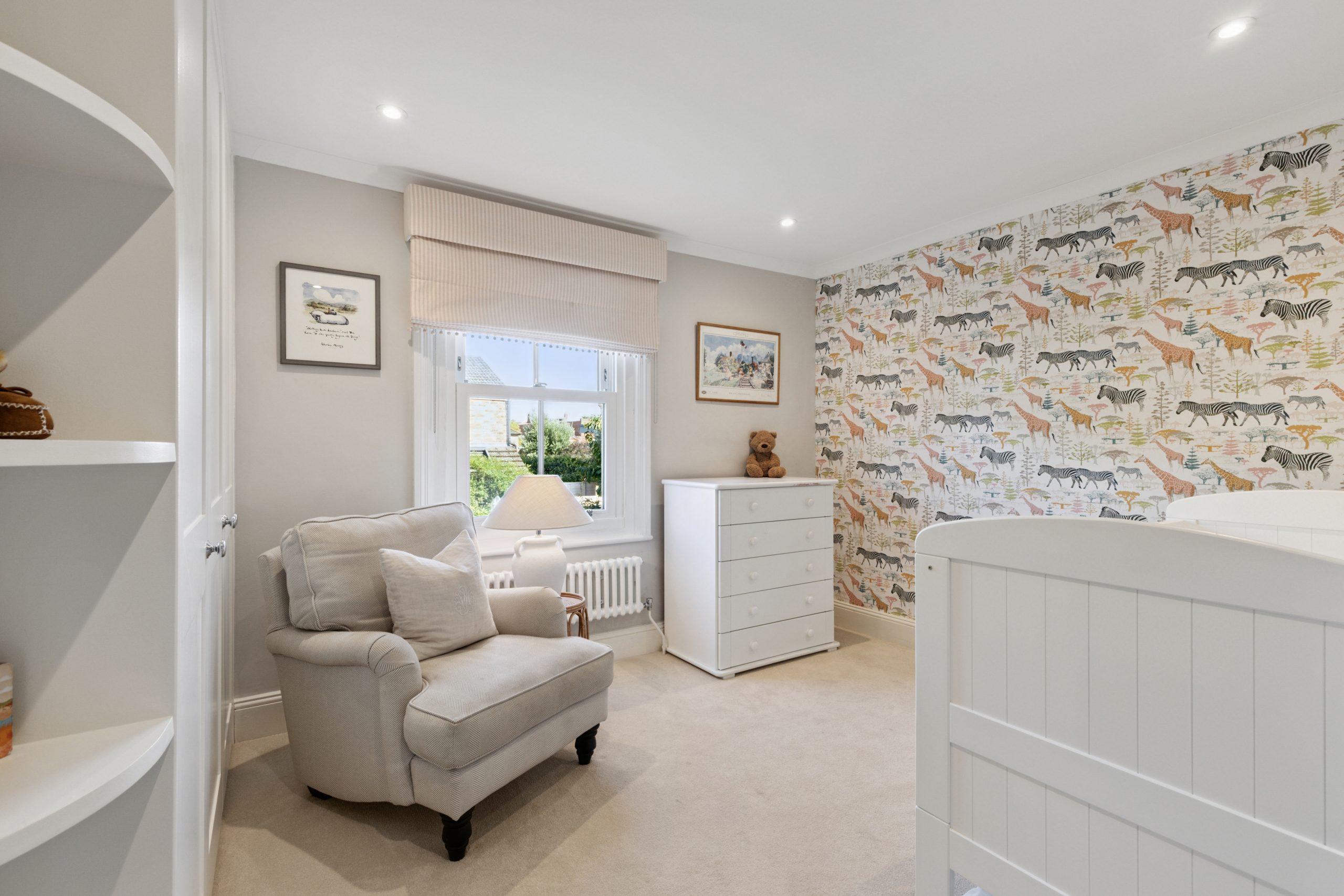 The upper floors are elegantly arranged over three levels. The first floor hosts a stunning principal suite complete with a private dressing room and en-suite, alongside a second double bedroom and a family bathroom. The second floor offers a unique, self-contained layout with its own double bedroom and bathroom, while the top floor features two further bedrooms, an additional bathroom, and expansive eaves storage.
