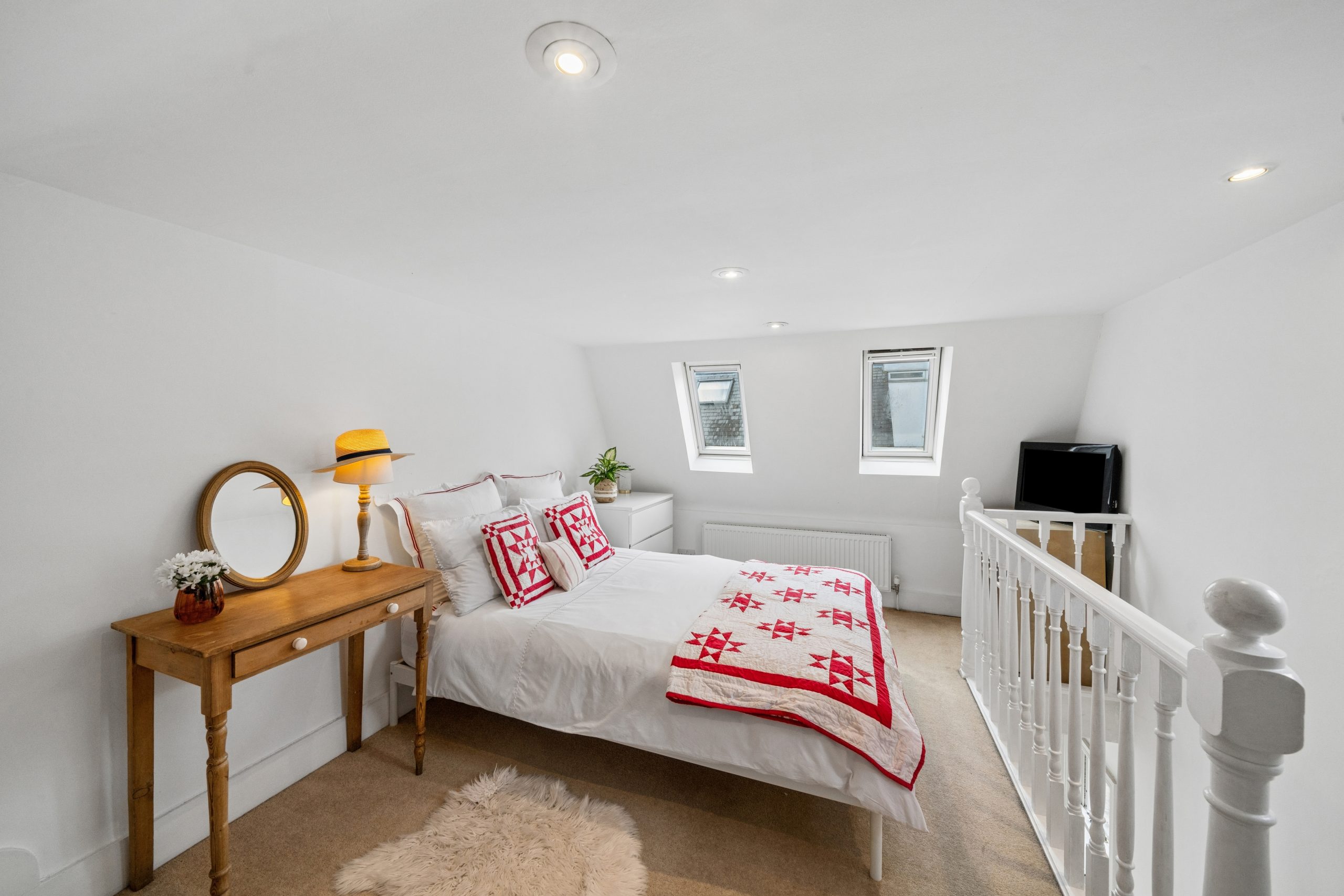 Occupying the top floor, a clever loft conversion provides a second double bedroom alongside ample eaves storage.